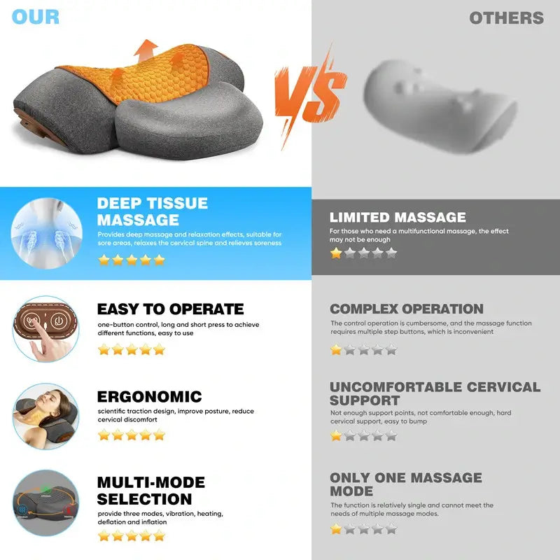The Pillow Massage Neck Hump offers the perfect 3-in-1 solution for deep tissue relief, heating, and hump correction. Relax and unwind as you target the pain at its source. It's time to reclaim your comfort and well-being!
